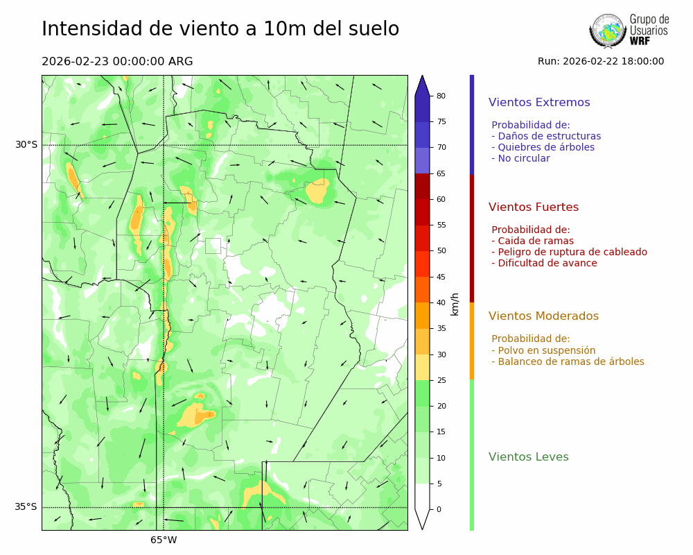• Intensidad máxima: 10.33 km/h (23/02/2026 11hs.)