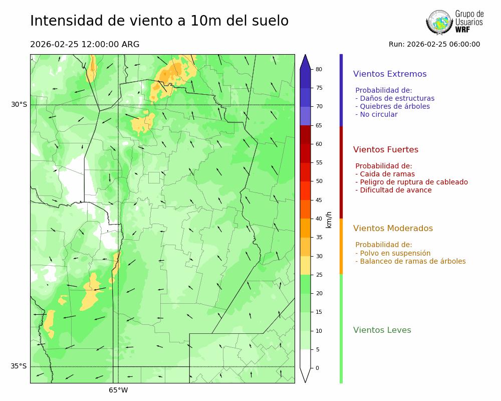 • Intensidad máxima: 12.57 km/h (25/02/2026 20hs.)