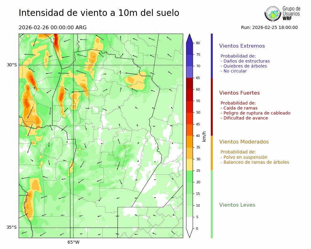 • Intensidad máxima: 14.80 km/h (26/02/2026 11hs.)