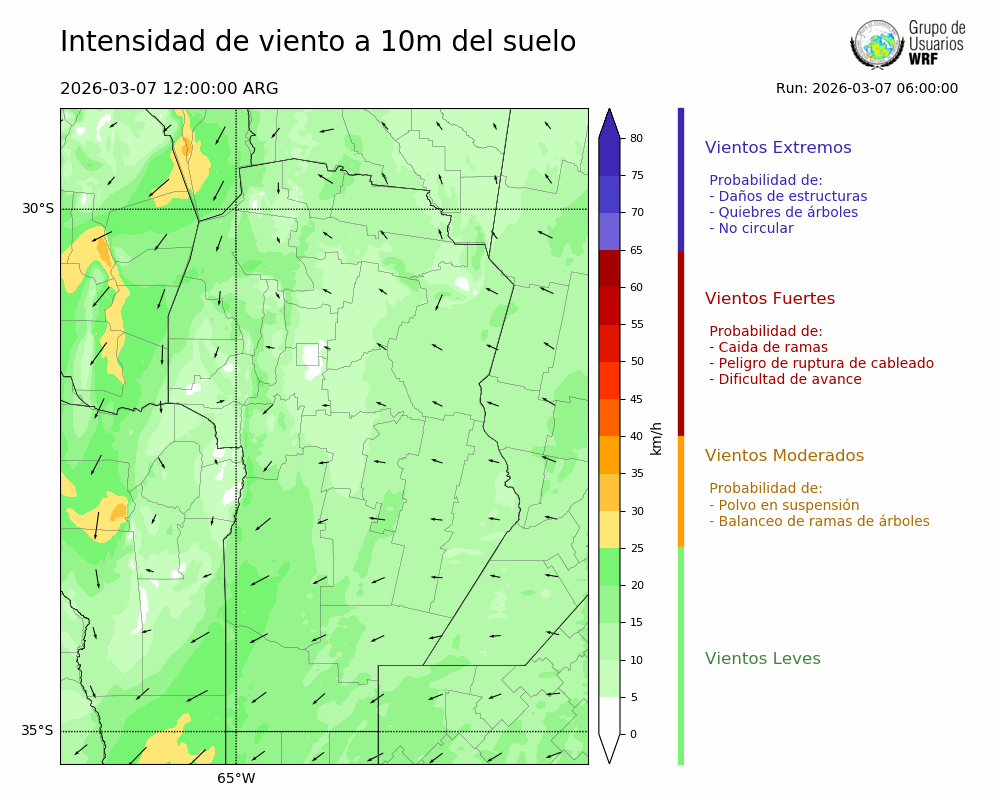• Intensidad máxima: 5.78 km/h (08/03/2026 06hs.)
