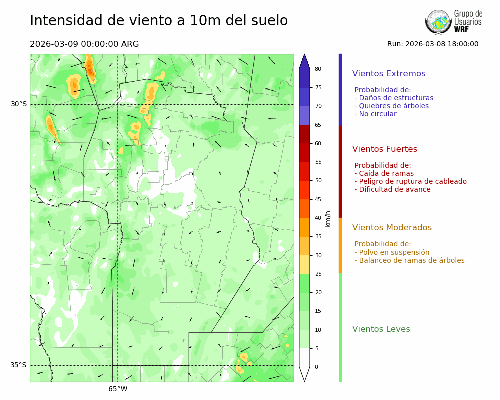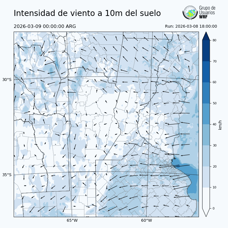 • Intensidad máxima: 7.35 km/h (09/03/2026 06hs.)