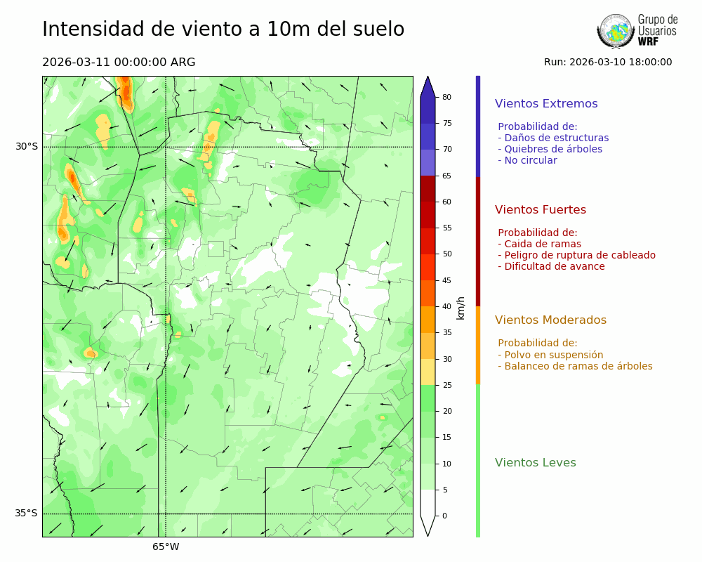 • Intensidad máxima: 11.97 km/h (11/03/2026 11hs.)