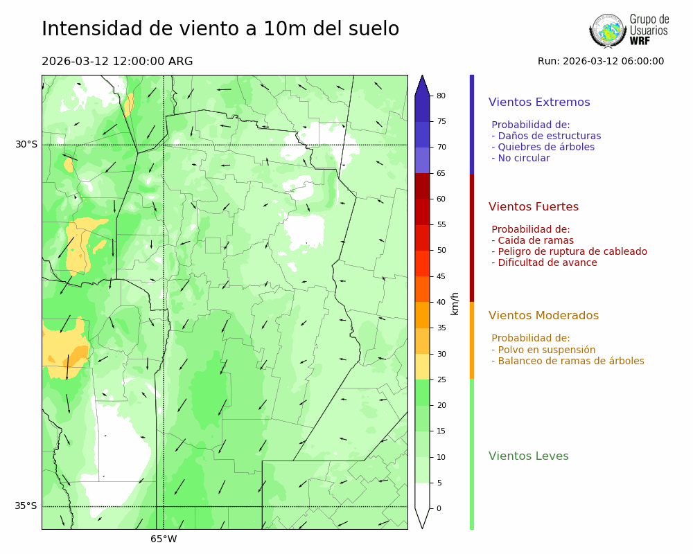 • Intensidad máxima: 15.99 km/h (12/03/2026 20hs.)