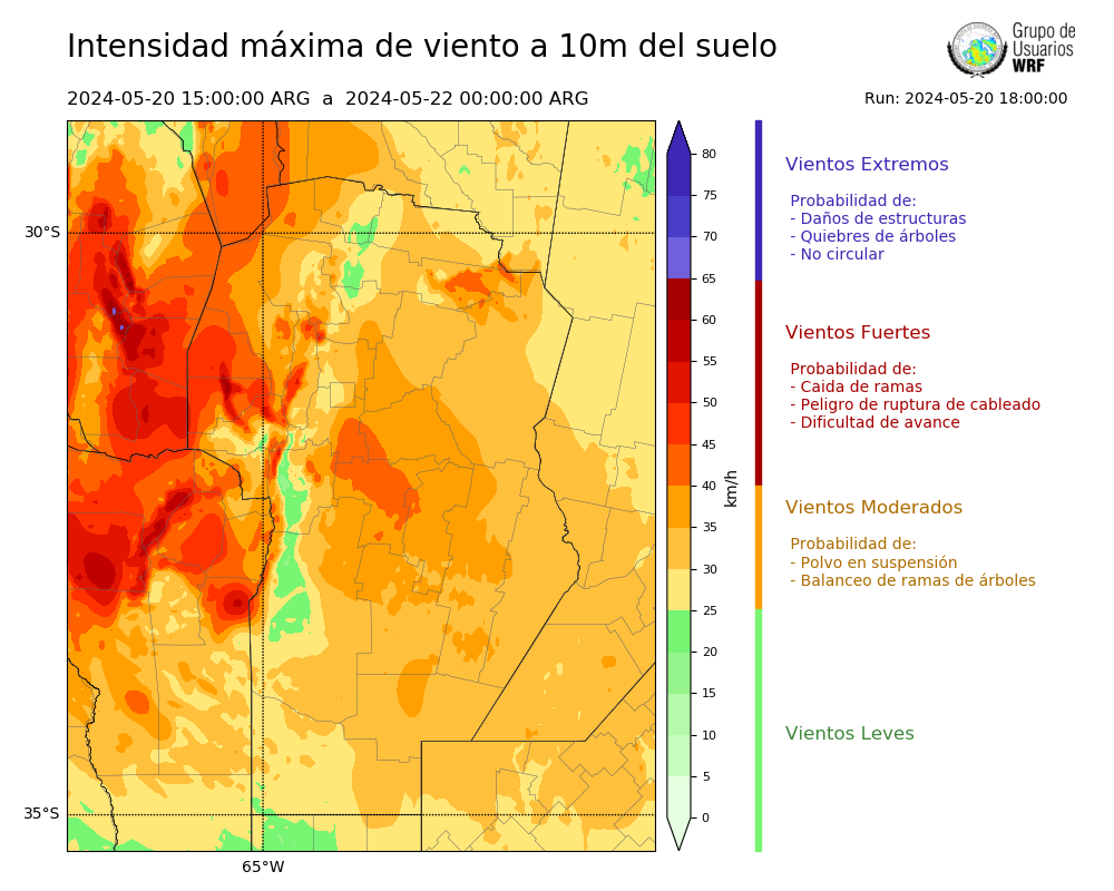 • Intensidad máxima: 12.15 km/h (23/05/2024 10hs.)