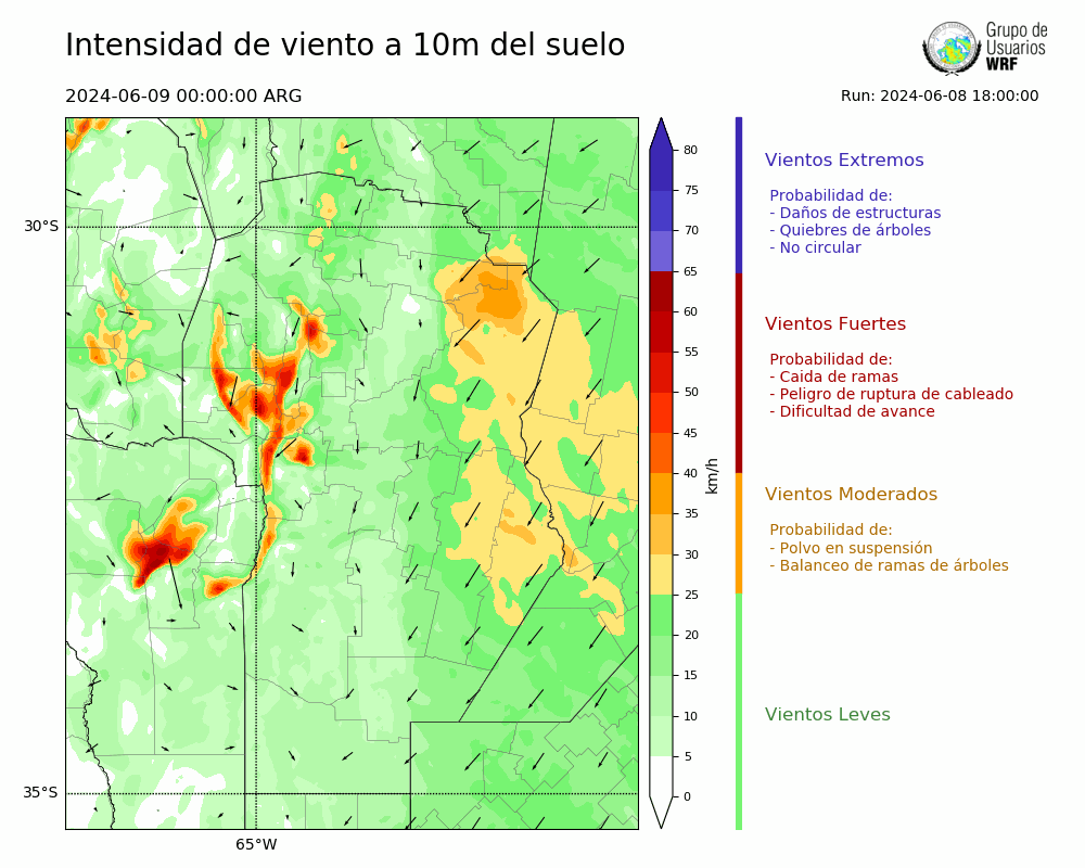 • Intensidad máxima: 32.61 km/h (09/06/2024 06hs.)