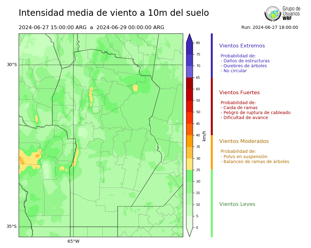 • Intensidad máxima: 13.39 km/h (29/06/2024 23hs.)