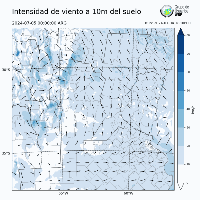 • Intensidad máxima: 11.34 km/h (05/07/2024 01hs.)