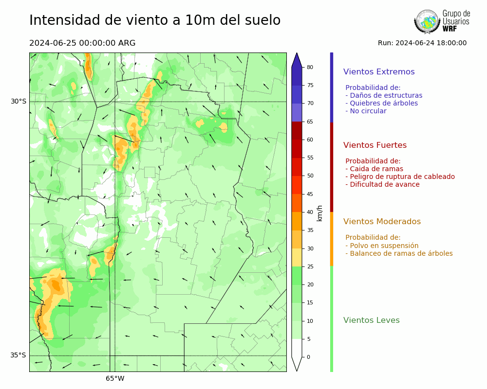 • Intensidad máxima: 8.44 km/h (25/06/2024 02hs.)