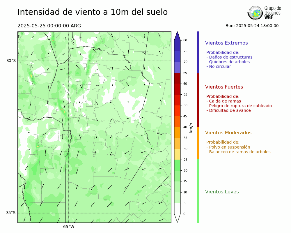 • Intensidad máxima: 8.22 km/h (26/05/2025 15hs.)
