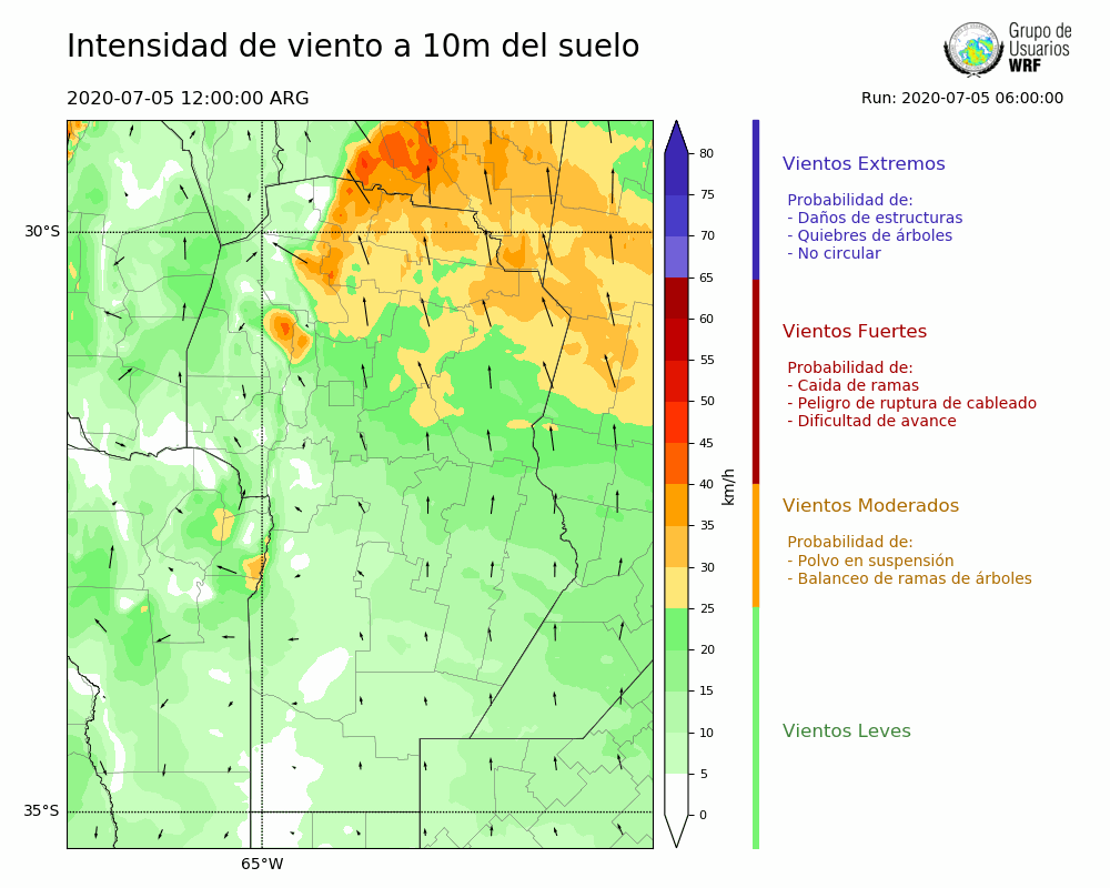 • Intensidad máxima: 15.50 km/h (06/07/2020 05hs.)