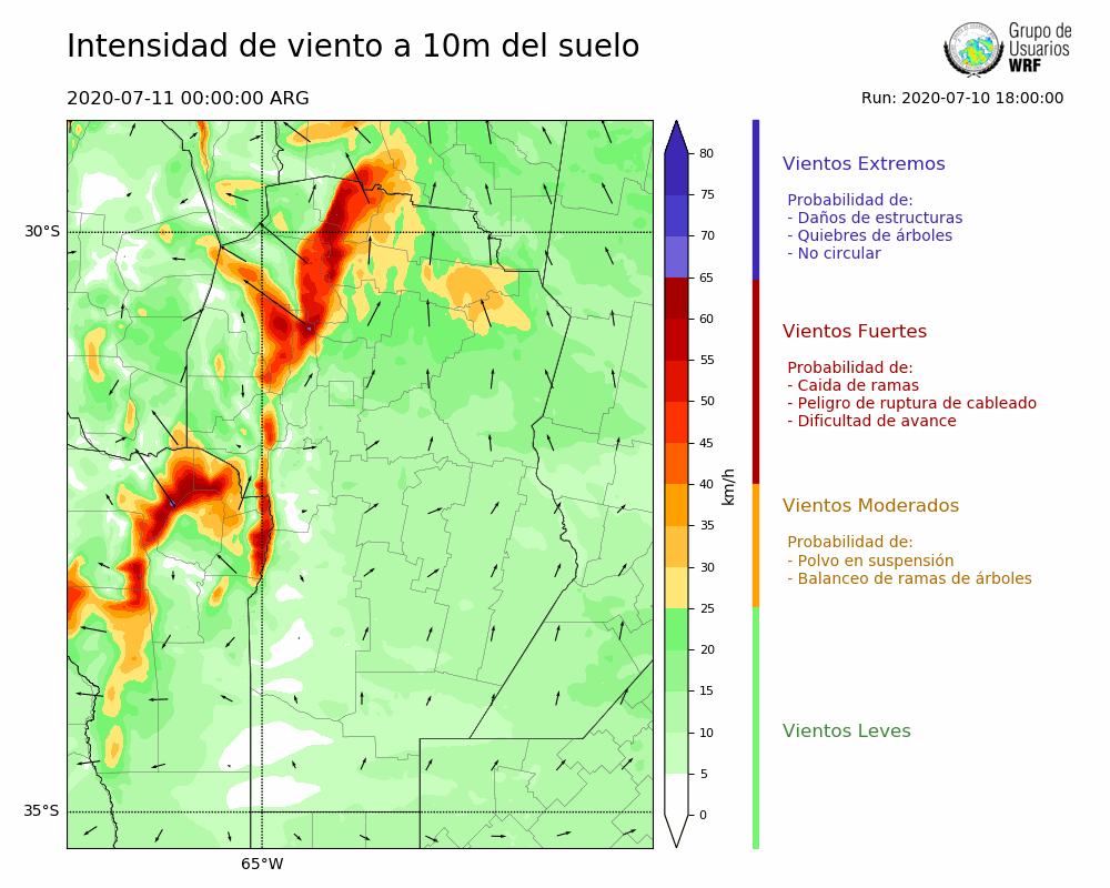• Intensidad máxima: 25.78 km/h (11/07/2020 09hs.)