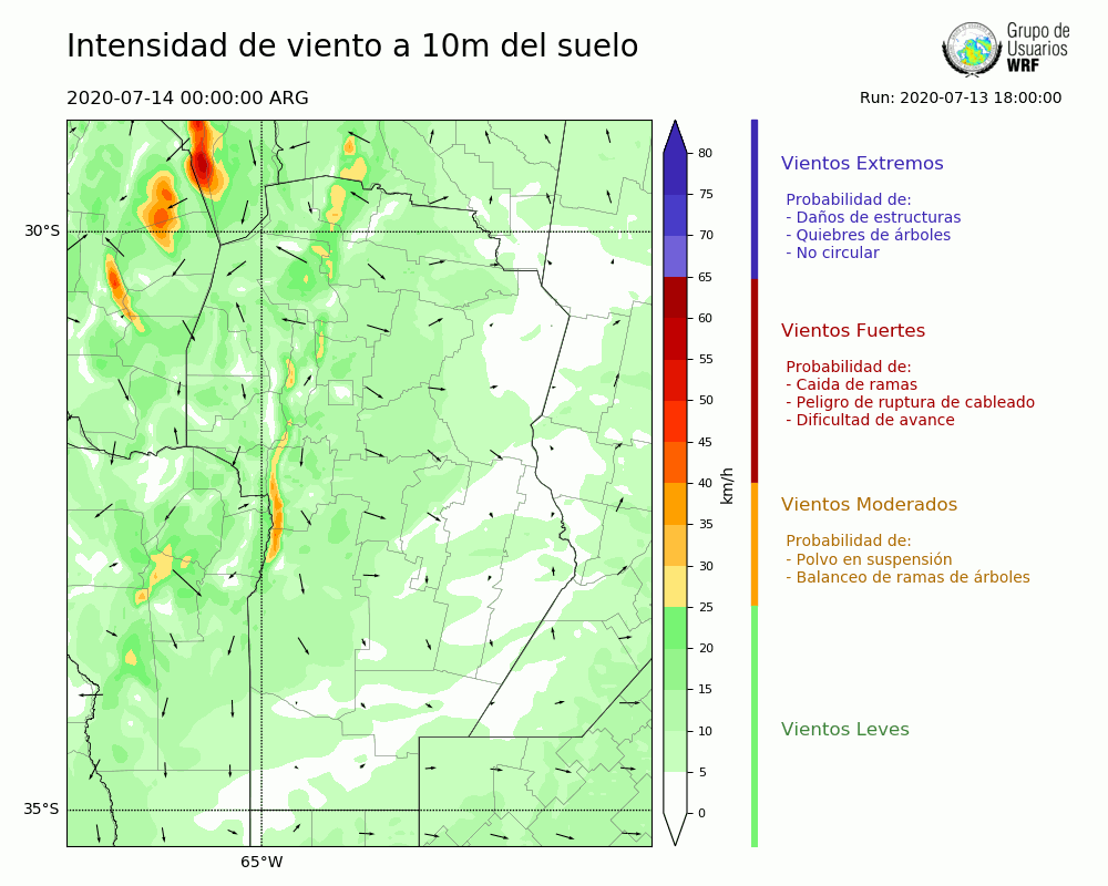 • Intensidad máxima: 26.92 km/h (14/07/2020 11hs.)