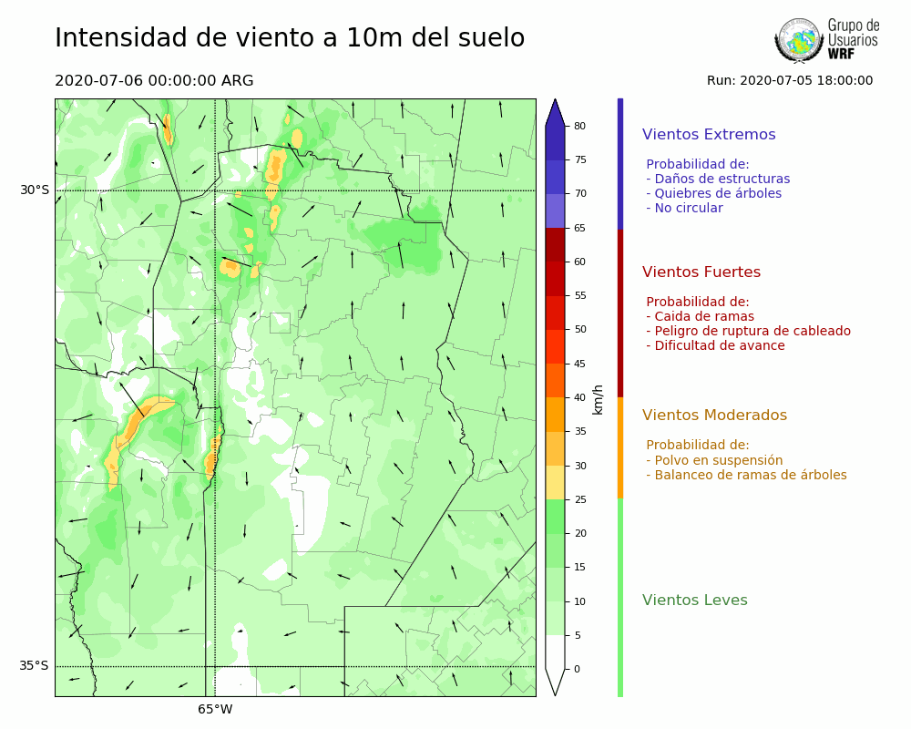 • Intensidad máxima: 17.57 km/h (06/07/2020 11hs.)