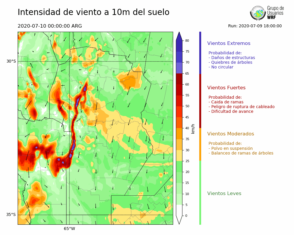• Intensidad máxima: 7.81 km/h (10/07/2020 11hs.)