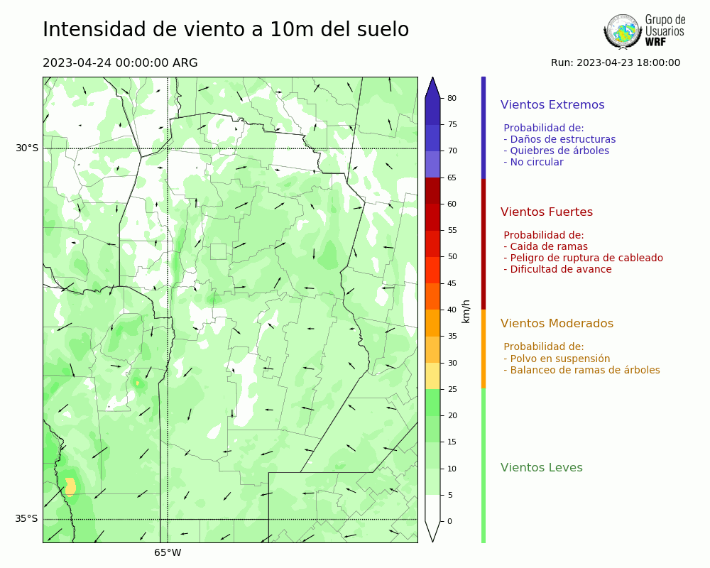 • Intensidad máxima: 6.04 km/h (24/04/2023 06hs.)