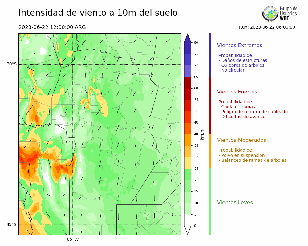 • Intensidad máxima: 6.92 km/h (22/06/2023 21hs.)