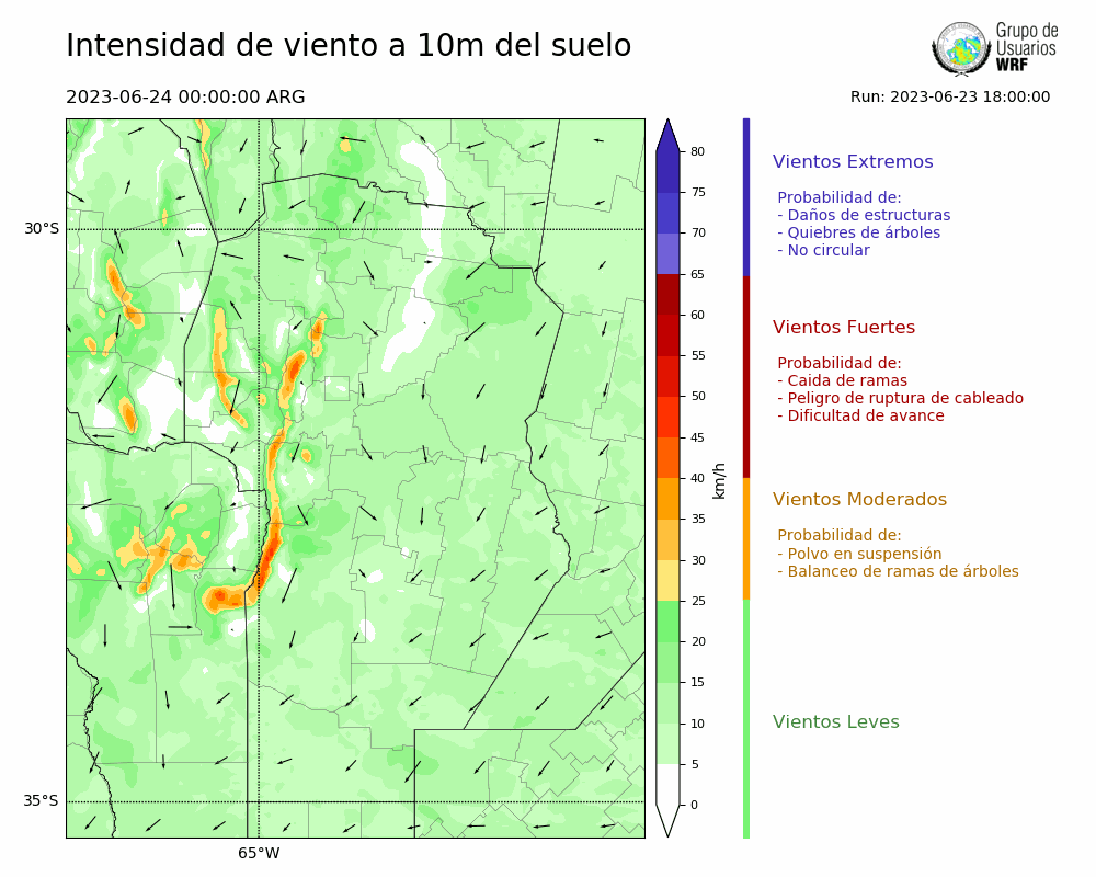• Intensidad máxima: 10.40 km/h (24/06/2023 01hs.)