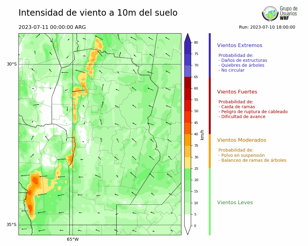 • Intensidad máxima: 12.90 km/h (12/07/2023 05hs.)