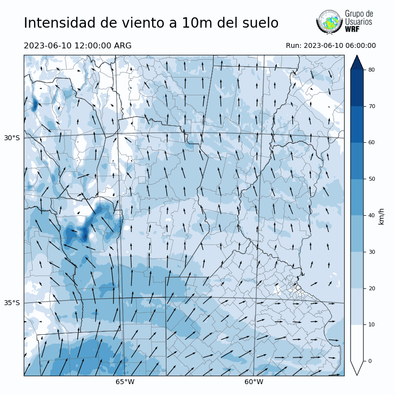 • Intensidad máxima: 8.80 km/h (10/06/2023 12hs.)