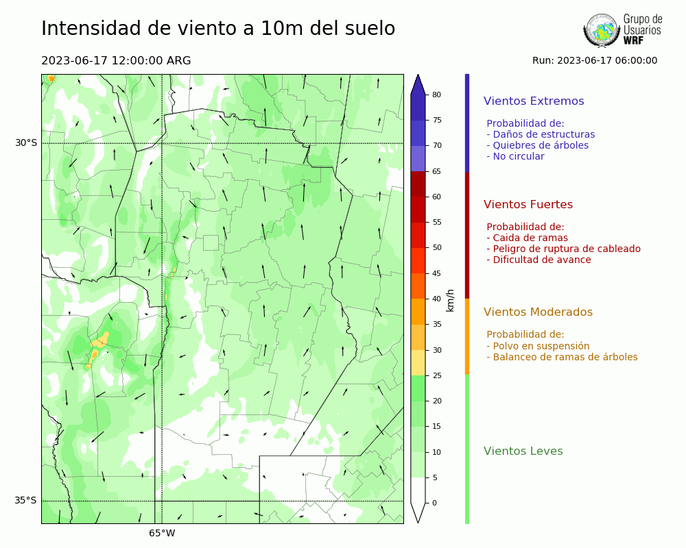 • Intensidad máxima: 10.94 km/h (17/06/2023 13hs.)