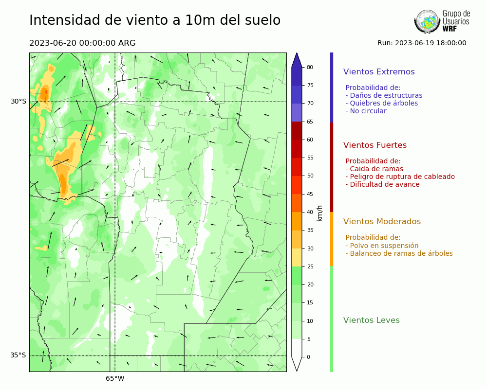 • Intensidad máxima: 8.48 km/h (20/06/2023 02hs.)