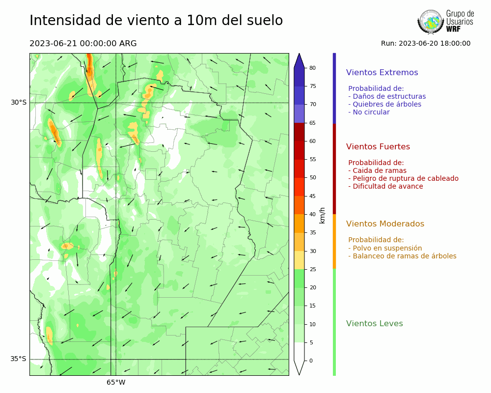 • Intensidad máxima: 10.19 km/h (21/06/2023 00hs.)