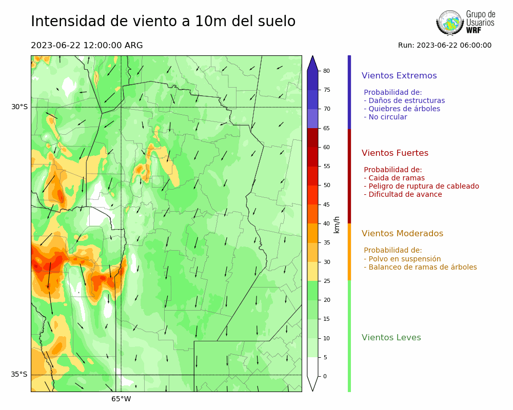 • Intensidad máxima: 5.11 km/h (22/06/2023 17hs.)
