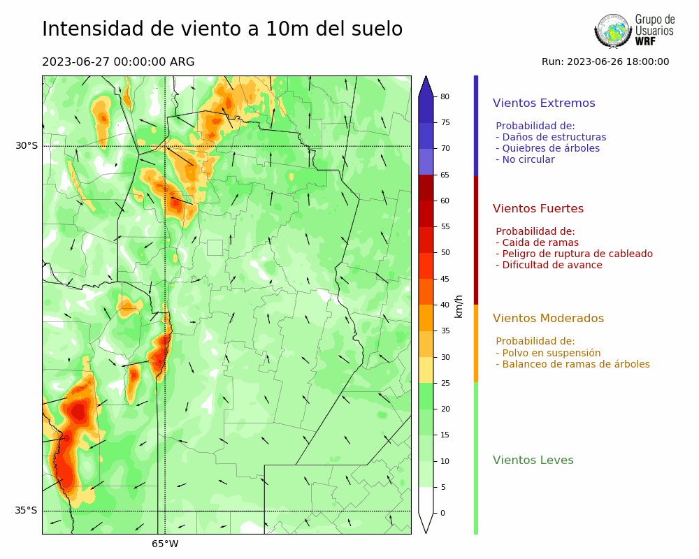 • Intensidad máxima: 11.90 km/h (27/06/2023 00hs.)