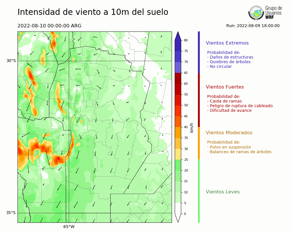 • Intensidad máxima: 10.60 km/h (10/08/2022 00hs.)