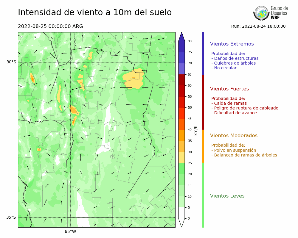• Intensidad máxima: 4.79 km/h (26/08/2022 19hs.)