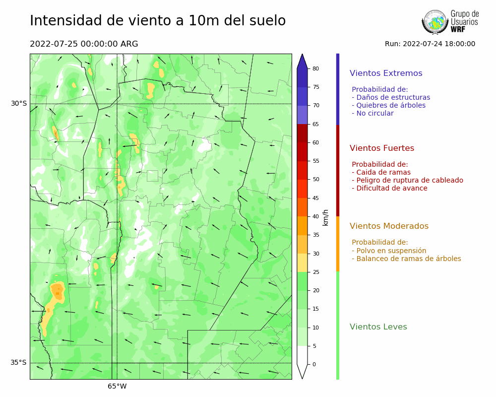 • Intensidad máxima: 7.78 km/h (27/07/2022 11hs.)