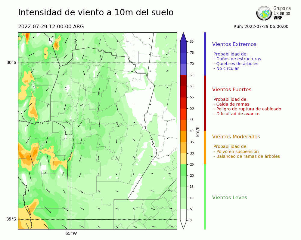 • Intensidad máxima: 14.40 km/h (29/07/2022 17hs.)