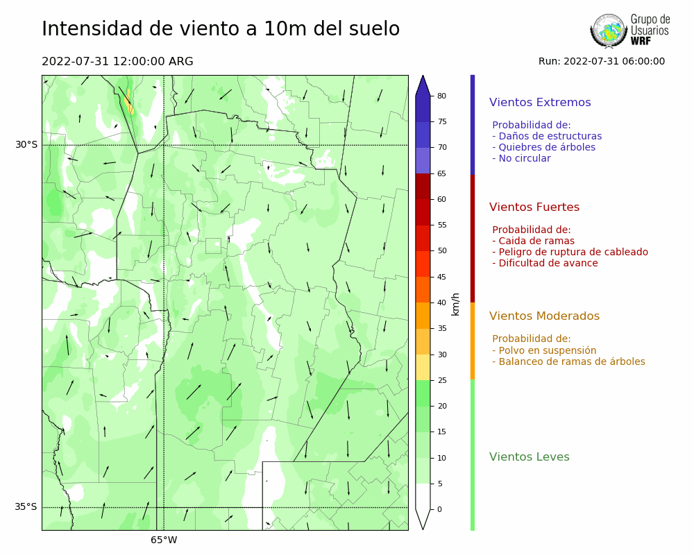 • Intensidad máxima: 7.62 km/h (01/08/2022 04hs.)