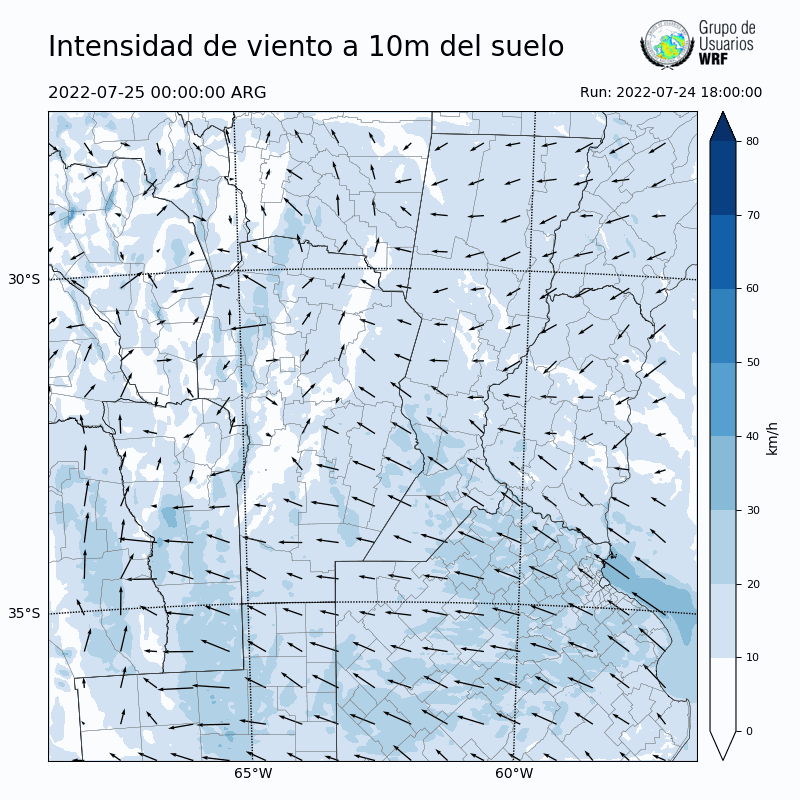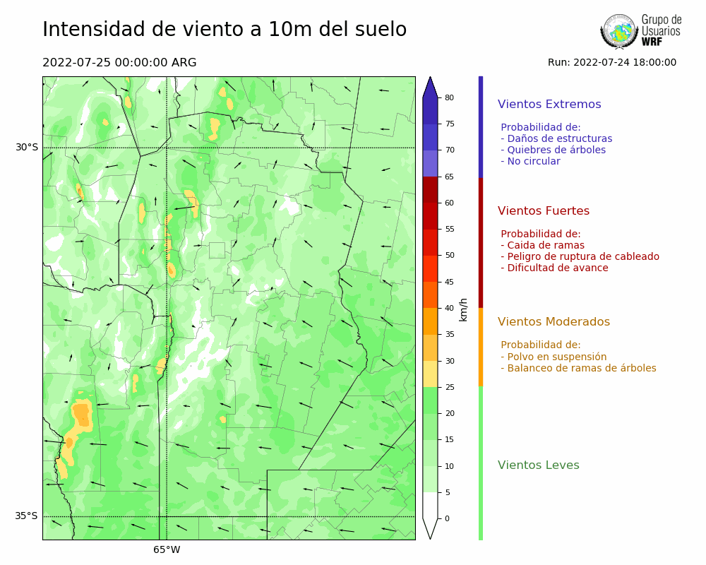 • Intensidad máxima: 6.64 km/h (25/07/2022 06hs.)