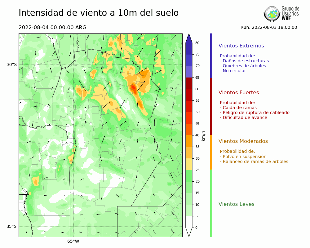• Intensidad máxima: 13.13 km/h (04/08/2022 08hs.)