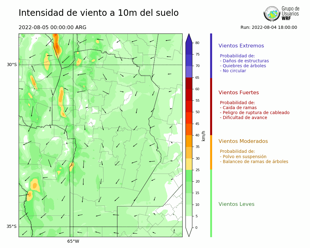 • Intensidad máxima: 3.17 km/h (05/08/2022 05hs.)