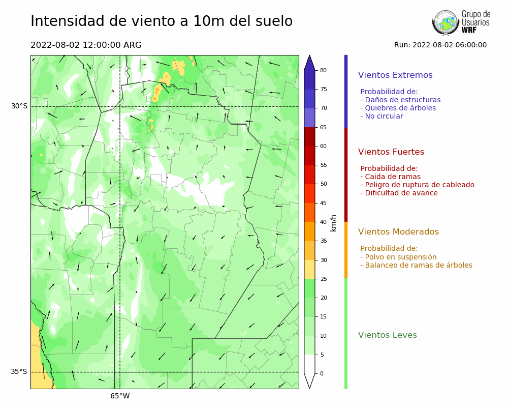 • Intensidad máxima: 2.46 km/h (04/08/2022 10hs.)