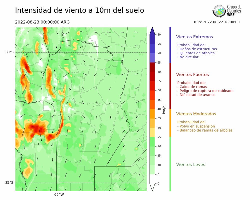 • Intensidad máxima: 11.97 km/h (23/08/2022 16hs.)