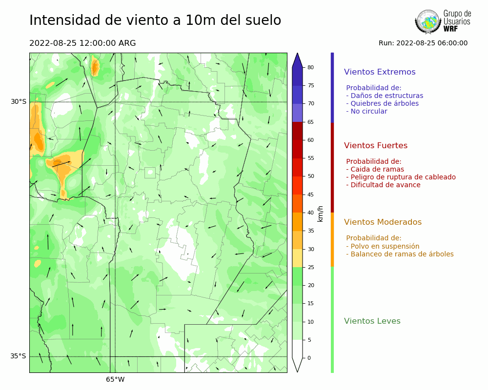 • Intensidad máxima: 15.06 km/h (25/08/2022 18hs.)