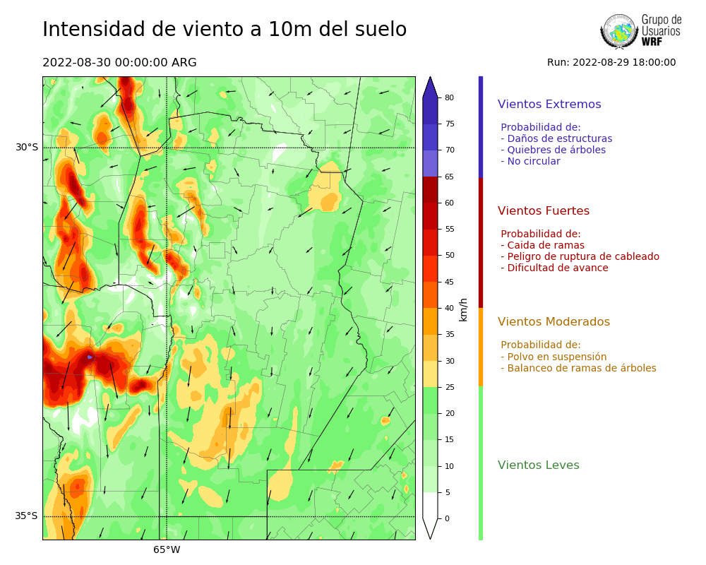 • Intensidad máxima: 10.82 km/h (30/08/2022 11hs.)