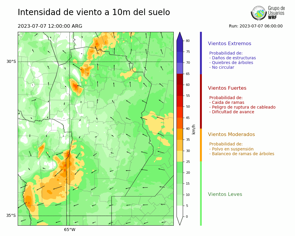 • Intensidad máxima: 11.85 km/h (07/07/2023 12hs.)