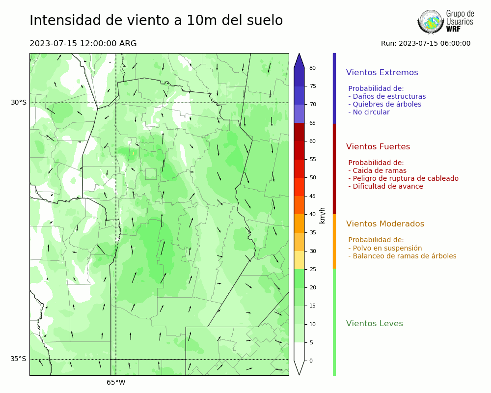 • Intensidad máxima: 15.34 km/h (15/07/2023 12hs.)