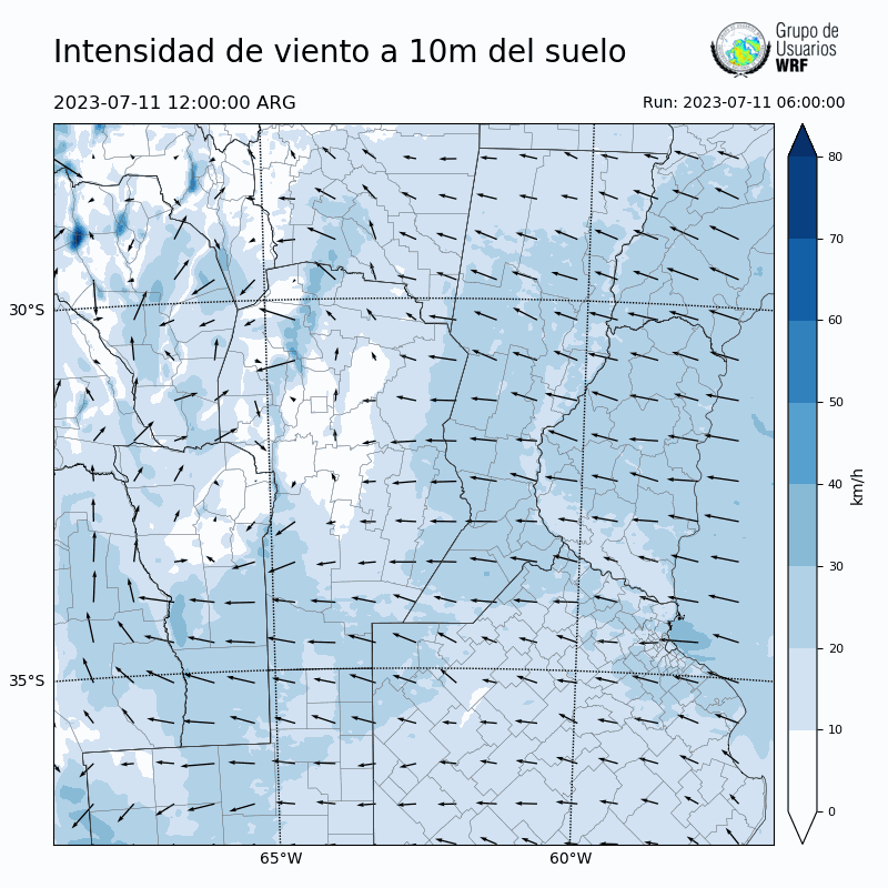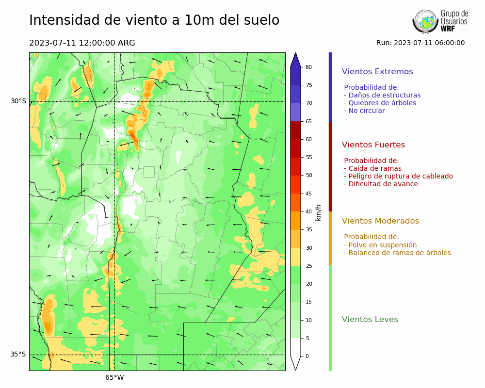 • Intensidad máxima: 26.78 km/h (12/07/2023 06hs.)
