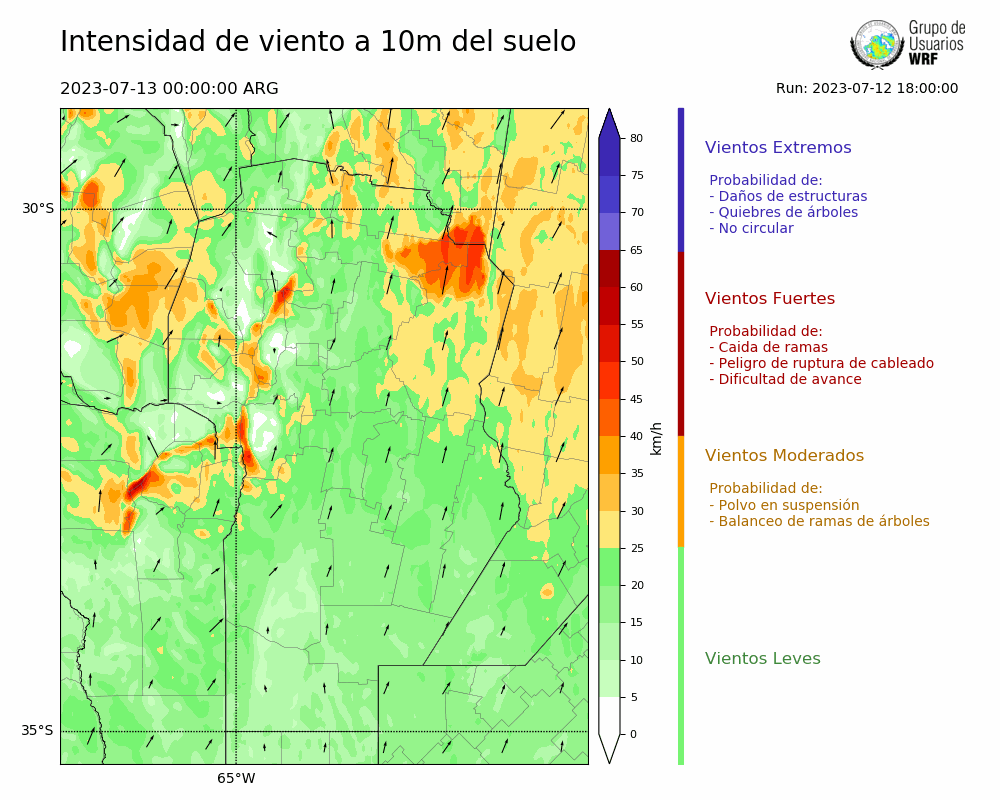 • Intensidad máxima: 26.60 km/h (13/07/2023 06hs.)