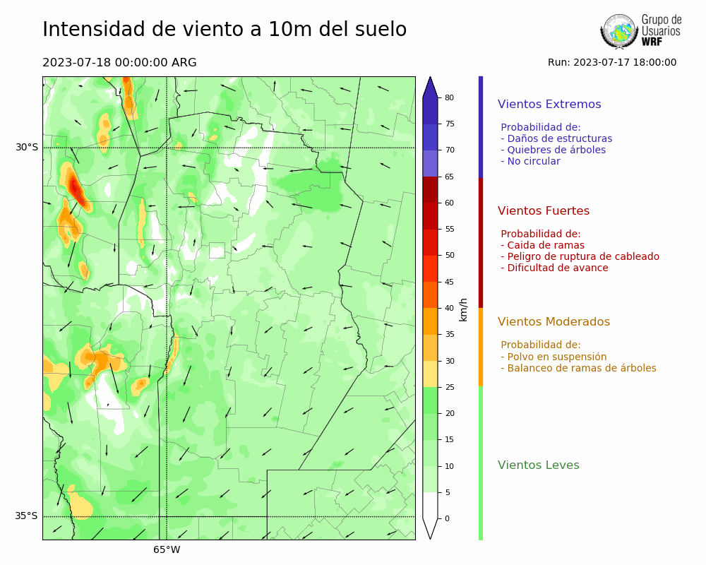 • Intensidad máxima: 27.80 km/h (18/07/2023 11hs.)