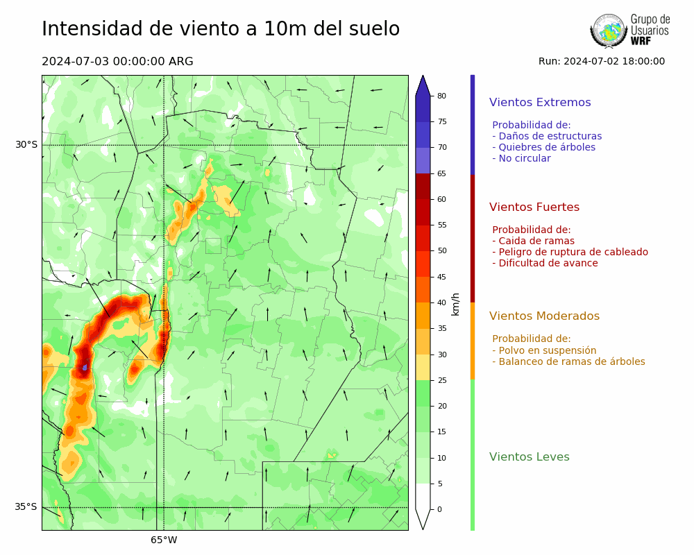 • Intensidad máxima: 17.99 km/h (03/07/2024 05hs.)