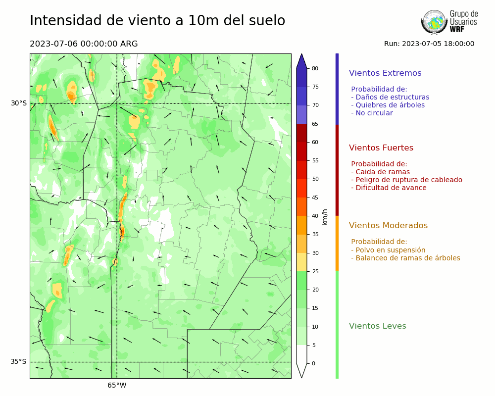 • Intensidad máxima: 7.96 km/h (06/07/2023 07hs.)