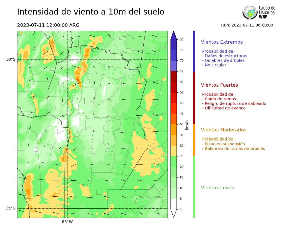 • Intensidad máxima: 21.38 km/h (12/07/2023 04hs.)