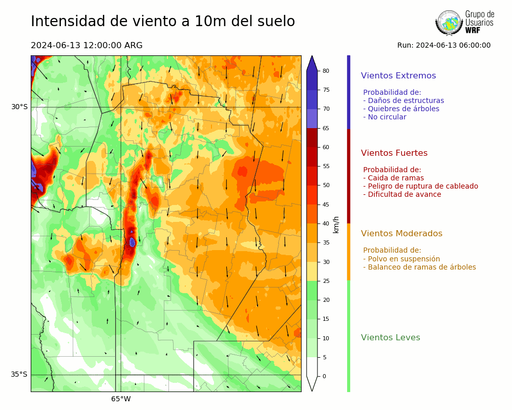 • Intensidad máxima: 8.94 km/h (14/06/2024 08hs.)