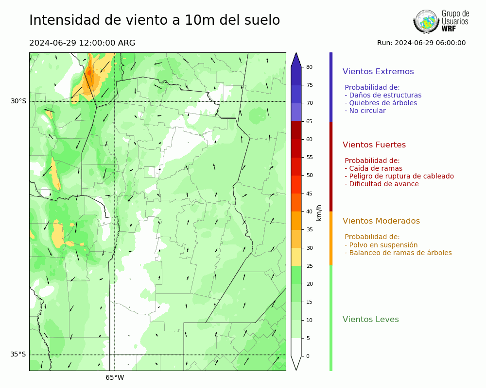 • Intensidad máxima: 17.10 km/h (30/06/2024 02hs.)